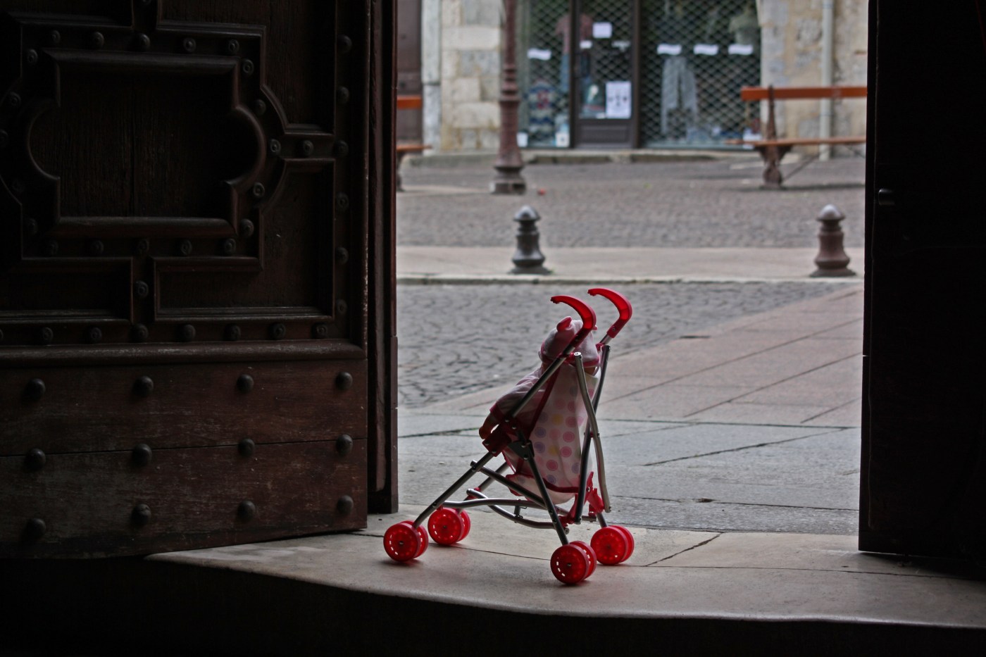 Спустить супер современную коляску по средневековой лестнице, — это целое дело и дети были уже давно внизу, пока мы с мужем снесли её вместе с Розочкой вниз. Мы были на последних ступеньках, когда снаружи ресторана вдруг раздались громкие крики- полный отчаяния голос Джона и вслед за ним похожие на сирену завывания Беляночки. Одним прыжком мы были на улице, на пустой после дождя террасе ресторана.