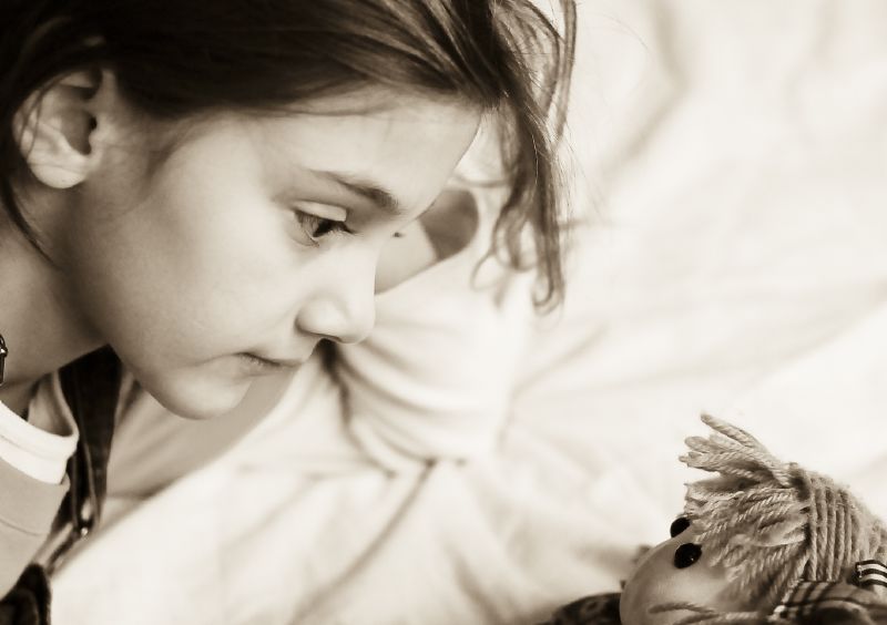 Потом мы фотографировали её мечтательно смотрящую в окно, кокетливо сидящую за накрытым столом, погруженную в чтение, вольно несущуюся навстречу приключениям на лошадке-качалке. В обнимку с чемоданом у двери и в толпе мягких игрушек на кровати. Мы фотографировали, пока заказчик не попросился спать. Все устали, но хорошо провели время. Я была практически уверена, что Джеральдина тоже. Мне даже показалось, что в её улыбке что-то изменилось.